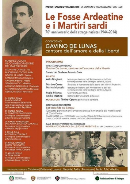 PADRIA. Sabato 29 marzo alle ore 16,30, presso la struttura dell’Ex Convento Francescano di Padria, si svolgerà l’evento commemorativo “Le Fosse Ardeatine e i Martiri Sardi”, organizzato in occasione del 70^ anniversario della strage nazista.