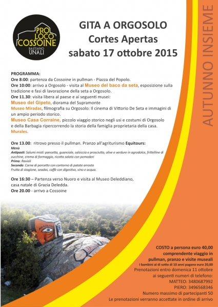 Ore 8:00 - partenza da Cossoine in pullman nella Piazza del Popolo